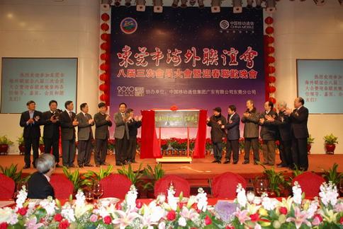 1月14日,广东省东莞市海外联谊会举行了八届三次会员大会暨迎春联欢晚宴,东莞市领导刘志庚、李毓全、刘树基、黄双福、游敏达,中央驻港联络办以及东莞各镇街统侨办工作人员出席了此次大会。海外联谊会副理事长王赐豪在会上做2009年会务工作报告,回顾了海外联谊会一年的工作情况。
