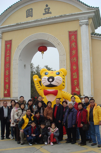 邝伟业祖箱广东开平市水口镇泮村余兴里,长期来热爱家乡,支持公益事业,深受当地村民的尊敬。在春节期间,他携亲人家属一行22人回到家乡祭祖、观光。并与乡亲聚在一起,共聚乡情。