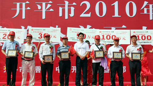 3月3日,开平市在城市广场举行2010年慈善公益万人行活动起步仪式,同时表彰了一批慈善活动作出突出贡献的海外侨胞、港澳同胞和海外社团。据悉,今年以来,该市慈善会共收到来自海外乡亲、社团的捐款1366万多元,其中海外乡亲捐款达1297万元,涌现旅港乡亲谭逢敬先生捐款800万元,谭华正先捐款200万元等一批突出贡献的热心人士。开平市委书记冯立坚在慈善公益万人行活动上,接受了海外侨胞和港澳乡亲热心人士支票捐赠仪式,并代表开平市慈善会向谭氏宗亲会、香港开平同乡会、澳门开平同乡会。旅港乡亲谭逢敬、谭华正、梁家熹、谭福添、吴汉良、谭锦濠、谭景彬、谭凯铭等善长仁翁颁发慈善纪念牌匾予以表彰。
