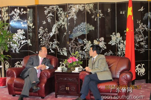 中新网3月4日电 据广东侨网消息,当地时间3月2日下午,刚飞抵美国旧金山访问的广东省侨办主任吴锐成,马不停蹄拜访三个华人社团后,又在广东省海外交流协会当地理事黄锡海、吴国宝的陪同下,率团拜访了中国驻旧金山总领馆。总领馆总领事高占生、领事汪明菊、领事吴刚会见了吴锐成一行。