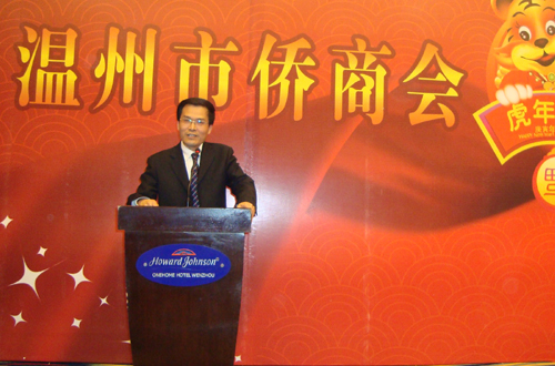 中新网3月4日电 据温州市侨办消息,近日,浙江省温州市侨商协会在万和豪生大酒店举行“2010年新春酒会”,温州市委常委、统战部部长陈作荣,市政协副主席姜嘉锋,市侨办陈永聪主任、副主任许捷、周海平及有关涉侨部门负责人和侨商会会员代表共120余人出席酒会,共庆元宵佳节。会议由温州市侨办副主任、市侨商会常务副会长周三荣主持。
