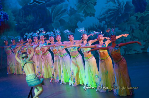 同时在演出场地还举行了《中华民族全家福》大型图片展,具有中国各民族风情的图片吸引了不少观众驻足观看。图为优美的傣族舞蹈《孔雀》。