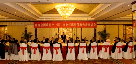 中新网3月9日电 据中国侨联网站消息,3月8日晚,中国侨联在华侨大厦召开了列席全国政协十一届三次会议的海外侨胞座谈会。