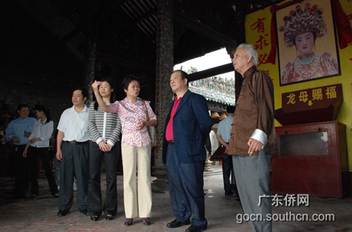 肇庆市外事侨务局局长林洁全程陪同吴锐成一行到龙母祖庙、德庆学宫(孔庙)、盘龙峡及新利达电子有限公司考察调研。(小琴 文/图)