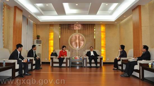 中新网3月29日电 据广西华侨企业协会消息,近日,广西壮族自治区侨办主任冯祖华会见了广西花红药业有限责任公司董事长韦飞燕一行,就如何利用广西华侨农林场土地资源优势种植中药材进行交流。