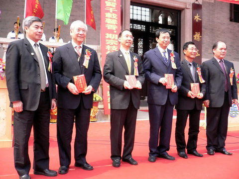 中新网4月16日电 据开平市外侨局消息,广东省开平市旅居海外余氏乡亲鼎力支持家乡教育和公益事业,改革开放以来,他们先后捐建了风采华侨中学、风采中学教学楼、重修风采堂、荻海卫生院、开平市中医院等一大批公益项目,共一千多万元,为侨乡的社会发展作出了重大贡献。日前,在开平市隆重举行重修名贤余忠襄公祠竣工剪彩暨风采中学建校七十周年庆典活动中,开平市政府表彰了爱国爱乡、热心支持家乡教育和公益事业的余氏乡亲,向他们赠送锦旗纪念品。