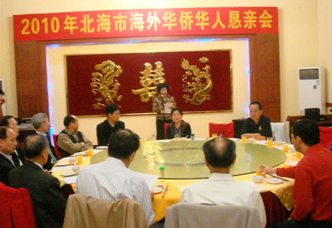 中新网4月16日电 据北海市侨联消息,近日,2010年广西北海市海外华侨华人恳亲会在银海区侨港镇举行。北海市侨办主任王慧才、侨联主席周庭雯、银海区统战部长陆金英等有关部门领导参加了恳亲会。