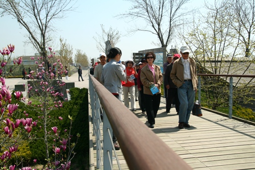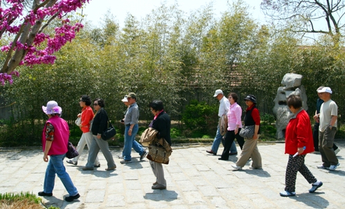 中新网5月5日电 据日照市东港区侨办消息,5月2日,美国华侨华人回乡访问团一行32人在山东省日照市外侨办主任王洛成的陪同下赴日照市东港区考察访问,先后参观了刘家湾赶海园和丁肇中祖居。
