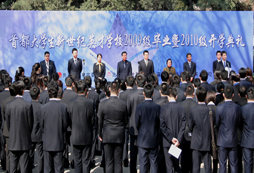 中新网5月7日电 据北京侨网消息,近日,首都大学生新世纪英才学校2009级毕业暨2010级开学典礼在北京大学俄文广场举行。北京市侨办副巡视员初世敏代表市侨办出席活动,并为英才学校2009级毕业生和96名2010级新学员分别颁发了毕业证书和录取通知书。
