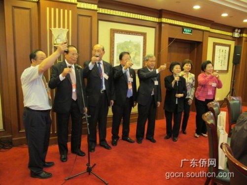 中新网5月10日电 据广东侨网消息,5月7日晚,广东省侨办主任吴锐成、副主任黎静在北京京西宾馆设宴欢迎参加第五届世界华侨华人社团联谊大会的部分侨领。