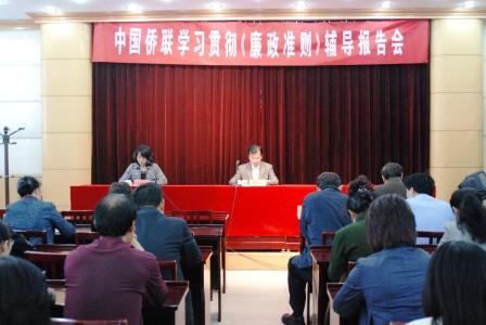中新网5月26日电 据中国侨联网消息,为进一步学习贯彻执行《廉政准则》,推动中国侨联党风廉政建设,根据会党组的安排,中国侨联直属机关纪委于近日在侨联机关老干部活动中心,邀请中纪委法规室副主任谭焕民就学习贯彻《廉政准则》作专题辅导报告。