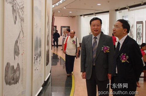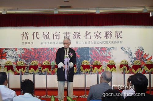 中新网5月26日电 据广东侨网消息,5月25日,由香港汉荣书局有限公司、广东省佛山市石景宜刘紫英伉俪文化艺术馆主办的“当代岭南画派名家联展”在佛山市石景宜刘紫英伉俪文化艺术馆隆重开幕。来自粤、港、澳、台两岸四地的岭南画派名家,以及省市有关部门领导、各界嘉宾等近300余人出席仪式,广东省侨办林琳副主任应邀出席了开幕式。