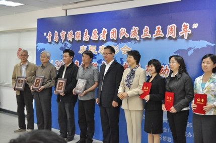 中新网6月4日电 据青岛市侨联消息,6月1日,青岛市侨联在市南区举行“志愿者团队成立五周年庆祝表彰会”暨“2010年侨联志愿者在行动”启动仪式,山东省侨联主席梁波出席活动并致辞,青岛市委常委、统战部长臧爱民出席活动。