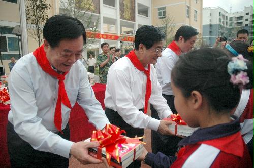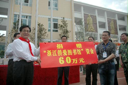 中新网6月25日电 据浙江侨网消息,近日,浙江省委书记、省人大常委会主任赵洪祝,在四川省委、省政府主要领导的陪同下,出席青川中学侨爱图书馆捐赠仪式,并向该校学生赠书。