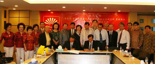 当日下午,访问团一行又拜会了印尼华裔总会,山东省海外交流协会与印尼华裔总会签订了友好关系协议书。