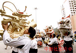 澳门每逢重大的庆典,都要举行传统的舞狮。作者:贾国荣