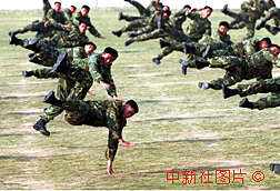 解放军驻澳门部队战士表演格斗术。
