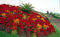 澳门回归前新建成一座郊野公园,市民们在花团锦簇中登高健身,赏心悦目。中新社传真