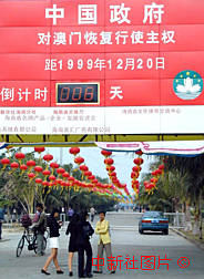 海口市近日在万绿园入口处挂起迎澳门回归倒计时牌,澳门回归前后海口市将举办规模空前的大型灯展等系列活动。