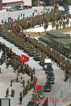 中国人民解放军驻澳门部队二十日中午十二时编队整齐威严,经关闸进入澳门。 中新社传真 毛建军摄