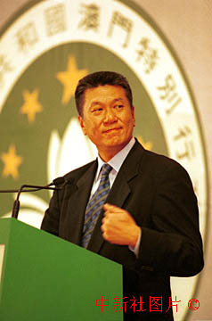 澳门特区行政长官何厚铧二十日举行履任后首次记者会,回答中外记者提问。中新社传真 李刚摄