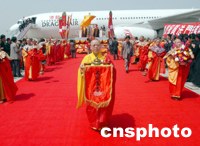 组图:专机运载佛指舍利赴台
